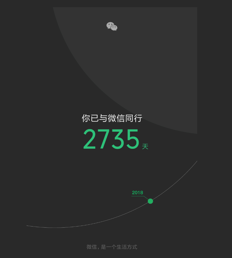 報告還給我們留了一個大彩蛋,提到“微信8年”你陪了微信多少天?日期只是數(shù)字,生活的點滴才是人生的歷程,在這微信8年之中,或許大家都經(jīng)歷了無數(shù)的悲歡離合,但大家卻仍然陽光的面對生活。