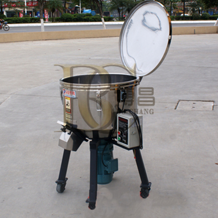 塑料顆粒立式混色機,采用不銹鋼四抓槳葉,密封蓋子 加厚底板,配超大電機,加大變速箱,使產品快速攪拌均勻的過程.立式混色機干燥原理:利用攪拌葉片快速旋轉,使物料高速翻滾碰撞摩擦生熱,在混色的過程中同時也使水分從排氣管快速蒸發掉,從而達到干燥的目的。