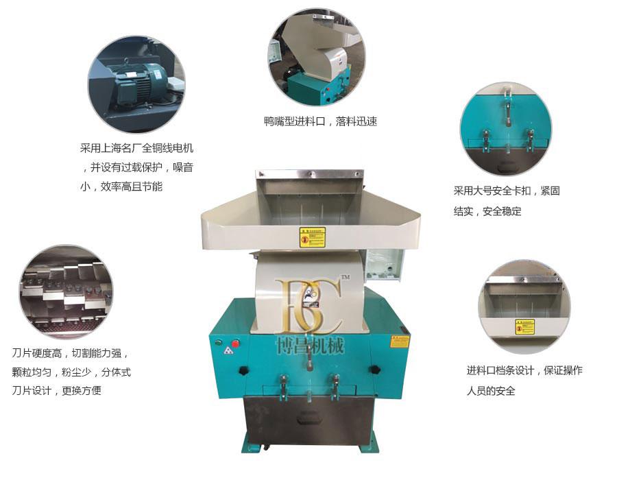 3、強力破碎機起動前,先用手轉動轉子,檢查一下齒爪、錘片及轉子運轉是否靈活可靠,破碎室內有無碰撞現象,轉子的旋轉方向是否與機箭頭所指方向一致,動力機及塑料破碎機潤滑是否良好。